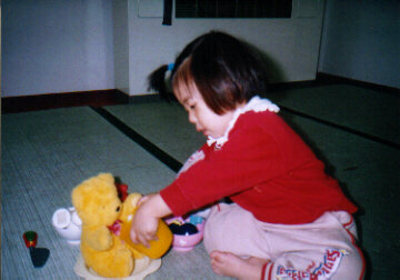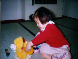 はい、くまさんもお茶をどうぞ♪