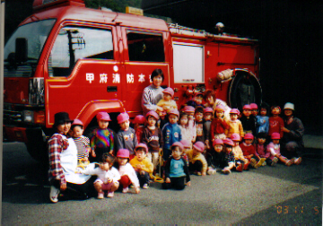 お散歩で消防自動車を見に行きました!